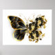 Gold flower butterfly with black jewelry orchid, decorated with gold leaves on white background.