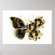 Gold flower butterfly with black jewellery orchid, decorated with gold leaves on white background.