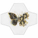 Gold flower butterfly with black jewellery orchid, decorated with gold leaves on white background.