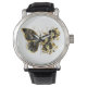 Gold flower butterfly with black jewellery orchid, decorated with gold leaves on white background.
