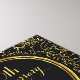 Elegant black background and gold floral damask pattern and diamonds heart in the middle. 50th wedding anniversary