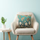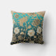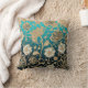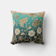 Gold and white flowers with turquoise and black background design on the throw pillow. AI-created.