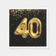 Gold mylar party balloons on black with gold star confetti for 40th birthday.