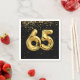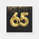 Gold mylar party balloons on black with gold star confetti for 65th birthday or anniversary party
