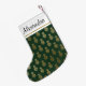 Gold Foil and Green Hawaiian Tropical Christmas in July Pineapples Monogram Stocking with your name makes a perfect Personalised Tropical Christmas Gift. The tropical stocking is perfect for celebrating the holidays on the beach.