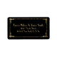 Gold foil personalised Art Deco Great Gatsby wedding address labels with customisable text printed on black background