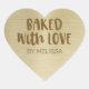 A personalised gold foil "baked with love" sticker. Make it yours by adding your own name. A pretty finishing touch for all of your handmade gifts. Designed for you by Blackberry Boulevard.