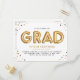 Let's celebrate the graduate! Customisable graduation party postcard featuring gold foil mylar balloons with festive confetti dots. This modern and trendy graduation invitation is perfect for high school and college graduations. Matching items are available.