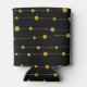 Gold foil beads and frame modern black wedding can cooler featuring a pattern featuring a pattern of string with gold foil balls with metallic shine that look like beads on rope on black background. Your text is in a golden frame. This elegant and stylish wedding template design is fully customisable and is perfect for a contemporary wedding, bridal shower, reception, engagement, or anniversary partyNote that THERE IS NOT REAL GOLD FOIL JUST PRINTED IMAGES.