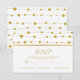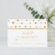 Gold foil beads and stripe modern wedding RSVP response or reply card featuring a pattern of string with gold foil balls with metallic shine on the top that look like beads on rope and a golden stripe on white background. This elegant and stylish wedding template design is fully customisable and is perfect for a contemporary wedding. Note that THERE IS NOT REAL GOLD FOIL JUST PRINTED IMAGES.