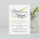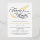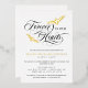 Elegant white and gold funeral invitation without photo with soaring birds printed in gold foil framing Forever in our Hearts in beautifully swirly fonts.