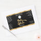 This elegant product label for body lotion bottles features a black background with a faux gold foil border. This label contains space for your logo, business name, product weight, ingredients, instructions, social media, and business address. This label measures 4.5 inches by 2.7 inches (114 mm by 68 mm) and is suitable for bottles with a diameter of 1.5 inches (38 mm) or more and a label height area of at least 3 inches (76 mm). Most 8 oz (240 ml) and 16 oz (480 ml) bottles fit this description (specifically cosmo or bullet and cylinder style bottles), but check the bottle specifications to be sure. This label makes a great choice for packaging beauty products that require larger labels.