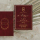 Elegant stylish burgundy and gold modern wedding invitation with an elegant handwritten font with curls and a monogram of the bride and groom. Classy and elegant, simple and modern invitation.