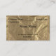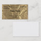 Simple black and white business card text arrangement with the pertinent information at top left and right, centre and bottom. Background is a golden foil