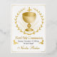 Announce the blessed event of First Holy Communion with this sophisticated Scripture Gold Wreath Invitation. This design features a classic gold wreath framing a prominent chalice and cross, evoking a sense of tradition and divine grace. The elegant script and subtle golden accents create a refined aesthetic, perfect for inviting guests to witness this important sacrament. Let this invitation be the first step in sharing your family's spiritual celebration.