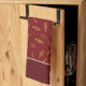 Add a custom modern touch to your home Christmas holiday decor with this kitchen towel. Towel has a pattern of a gold foil winter tree on red. Add your family last name for a personalised touch!