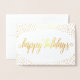 Beautiful Christmas card featuring gold foil confetti surrounding happy holidays written in a gorgeous script. Add your own photo and a personal note!