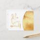 In this trendy, modern, customisable (back) announcement card, an elegant gold foil-effect digital image is partially covered by a concave, curved, asymmetrical white shape. On top of that overlay are the words: "We have moved!" in a matching gold foil effect featuring a graphic designed using a gorgeous, modern, handwritten-esque font. /// On the back, let your tribe know of your change of address. All text fields on the back can be edited in several ways: change the words, the colour, the font, the size... even the positioning! Make this change of address postcard as unique and just-for-you as your exciting new home is!