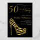 Gold Foil Black Fifty and Fabulous Modern Minimal 50th birthday invitation that you can personalise and send out for your fiftieth birthday party celebration. The words "50 and Fabulous" are set using trending bold font typography. .