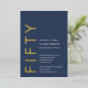 Gold Foil and navy blue and white Fifty and Fabulous Modern Minimal 50th birthday invitation that you can personalize and send out for your fiftieth birthday party celebration. The words are set using timeless and trending bold font typography. Text and background colors can be changed using the edit menu.
