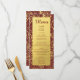 A luxurious design featuring your menu details on a classy gold background with a frame depicting a romantic floral motif in gold on a deep burgundy. You can personalise it by clicking on the customise link. This is part of a classy wedding suite with many matching elements.