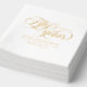 Elegant wedding anniversary napkins for a 50th wedding anniversary celebration with a gold foil swirly calligraphy script and your names in an elegant font printed with gold foil. White and gold 50th wedding anniversary napkins personalised with your names, wedding date, and a quote stamped in gold foil. Celebrate your golden fifty years together in style with these glamourous gold foil napkins personalised with your names and wedding date.