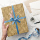 Add a shiny touch under your Christmas tree with this custom gold chequered pattern wrapping paper. Gift wrap has a background of checked faux gold foil and faux golden glitter. There are also areas for an optional monogrammed family last name or other text.