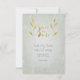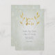 Lovely gold leaf, gold foil-effect on sage green-hued glass-like background, form an extraordinary setting on these wedding day Save-The-Date cards. Perfect for gold-styled wedding themes, and many other settings. Just add your own details into the template area above right, and if you need additional changes, click the “Customise It” button above. Please note these are flat, printed cards, and the gold foil-effect is a high quality image of our own design. Matching wedding invitations, RSVP, table number cards, postage stamps, and thank you cards are available.