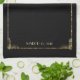 Gold foil (faux, printed as an image) Great Gatsby Art Deco cloth guest towels with customisable text, printed on black background