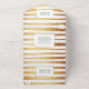 Celebrate in style with these elegant and very trendy all in one wedding invitations with easy tear off RSVP. The design features a chic striped white and gold foil effect background with tropical palm leaves and matching wording in a deep shade of green... stunning and simply perfect for any couple planning a destination or beach themed wedding celebration. The template is easy to personalise with your own wording and your guests will be thrilled when they receive these fabulous invites. Matching wedding items can be found in the collection.