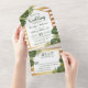Gold Foil & Green Palm Leaf Beach Wedding All In One Invitation