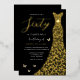 Gold Foil Heart Gown Black 60th Birthday Party Foil Invitation