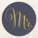 cute navy blue coasters with elegant faux gold foil scripted lettering showing the word Mr on the front. Matching coasters with the word Mrs available here.