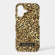 Customise this gold foil leopard print iPhone 17 case with your your name in a trendy modern CAP font in gold on black. It's so chic!