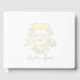 Let guests pen their wishes and sentiments with our Gold Foil Monogram Hand Drawn Crest Wedding Guest Book. This design features a whimsical hand-drawn illustration, making it a unique keepsake and adding a touch of whimsy and romance to your wedding memories.