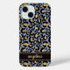 Gold Foil On Blue Leopard Print Monogrammed Case-Mate iPhone Case