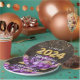 Class of 2024 Graduation party supplies and tableware. Easy to personalise congrats to the grad on these festive celebration faux gold Foil Purple Balloons paper plates and party supplies for the Class of 2024!