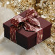 Marsala red with a golden random pattern printed on ribbon for wrapping gifts. Gold Foil Red Winter Scene Trees Snow Satin Ribbon. Great for festive, winter and dark moody themes. See our collection for more beautiful designs and colours.