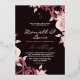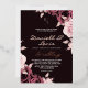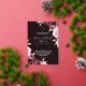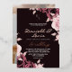 Modern stylish dark wedding invitation, pink roses with gold dust on with a gold ink pour effect and modern calligraphy. Classy and elegant, simple and modern invitation.