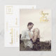 Gorgeous faux gold foil typography on the front of this designer postcard which you can upload into with your own engagement/save the date photo portrait. Easily and quickly personalise this designer professionally printed save the date postcard here and now by just typing over the example text and adding your own photograph. Elegant, chic, simple and classy gold script/cursive typography