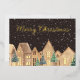 Elegant custom gold-foil Scandinavian village/houses "Merry Christmas" greeting card. Personalise with your family name and your own special message on the back. Or use the one we have.