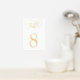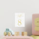 Simple and chic table number cards in white with gold foil lettering make an elegant statement at your wedding or event. Design features handwritten calligraphy script lettering with your table number in classic numerals. Single-sided print is intended to be placed in a tabletop frame as shown.