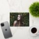 Elegant graduation announcement featuring the graduate's horizontal photo with "Graduate" in a gold foil script. Personalise the front of the photo graduation announcement by adding the graduate's name, school name, and graduation year. The announcement reverses to display a navy and white hand-drawn stripe pattern.