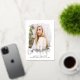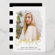 This trendy graduation announcement features the graduate's photo framed in a textured mask design, with "Graduate" elegantly displayed in handwritten gold foil script for a modern and chic look. Personalise this stylish photo graduation announcement by adding the graduate's name, school name, and graduation year to create a memorable keepsake. The reverse side features a bold black and white striped design, making this announcement a standout choice for high school and college graduates alike. Share this exciting milestone with family and friends in a unique, sophisticated way!