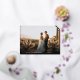 Elegant wedding thank you cards feature a single full bleed horizontal or landscape orientated wedding photo, with "Thank You" overlaid in chic gold foil calligraphy script. Personalise with your names and wedding date along the bottom in classic block lettering. Add a personal message and signature to the back.