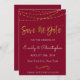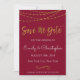 Gold Foil String Lights and Handwritten Script Burgundy Marsala Elegant Save the Date Invitation Card.