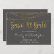 Gold Foil String Lights and Handwritten Script Charcoal Grey Elegant Save the Date Invitation Card.