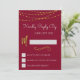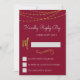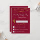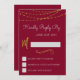Gold Foil String Lights and Handwritten Script Burgundy Marsala Elegant Wedding RSVP Reply Card.