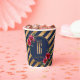Celebrate in style with this unique Sweet Sixteen paper cup design featuring a large, faux gold foil 'Sweet 16'. The solid navy blue background is bordered with diagonal stripes in the same gold foil effect with lush red roses in opposite corners. If preferred, the eye-catching 'Sweet 16' is optional and can be deleted to use this template for other occasions. Use the provided template to customise your name and birthdate. Search ID757 to see other products and colour options for this design.