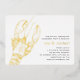 Simple yet stunning lobster bake or lobster boil invitations feature an intricately detailed lobster illustration in striking gold foil, with your event details aligned at the right. The names of your guest or guests of honour appear in gold foil for a chic finishing touch. Can be customised for any occasion; example shown for an engagement party.